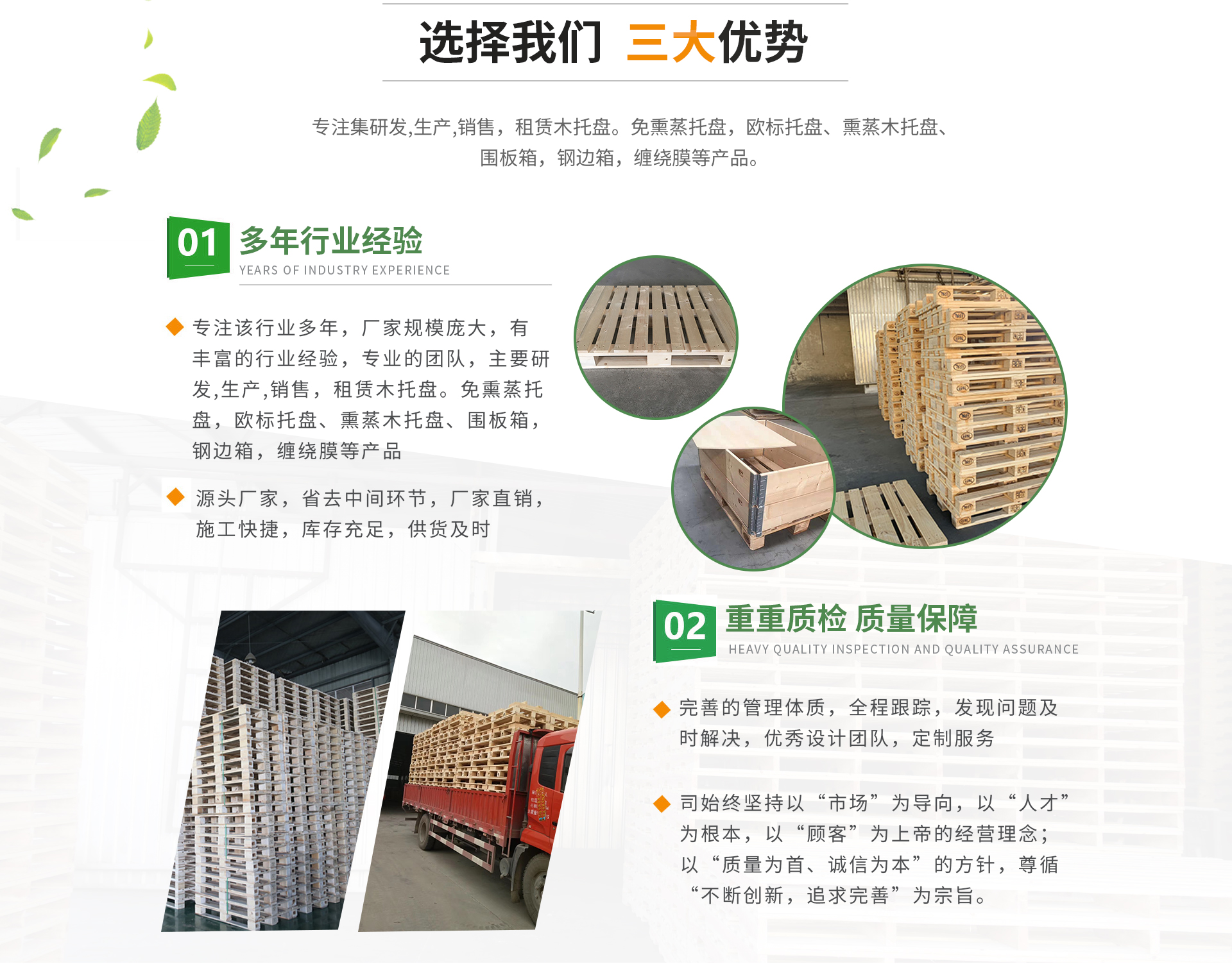 蕪湖奔騰包裝股份有限公司坐落于滬渝高速灣沚出口處3公里,距離灣沚高鐵站6公里,蕪宣客運機場5公里,交通十分便利。我公司是專注集木托盤研發,生產,銷售,租賃的綜合服務商。本公司生產的免熏蒸托盤,歐標托盤、熏蒸木托盤、圍板箱,鋼邊箱等產品遠銷海內外。公司本著“以質量求生存,以信譽謀發展,以服務拓出路”的服務經營理念;重視產品質量和服務,為用戶著想。根據客戶需求,及時送貨。公司始終堅持以“市場”為導向,以“人才”為根本,以“顧客”為上帝的經營理念;以“質量為首、誠信為本”的方針,尊循“不斷創新,追求完善”為宗旨。本著生產廠家,減少中間流通環節的原則,讓利于每位客戶朋友。我們的產品價格合理,質量過硬,真誠歡迎各方客商前來業務洽談與合作。